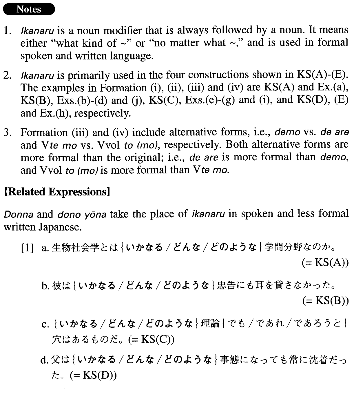 | (iv)いかなる | Noun+Particle {Vても/Vvolitionalと(も)} | |