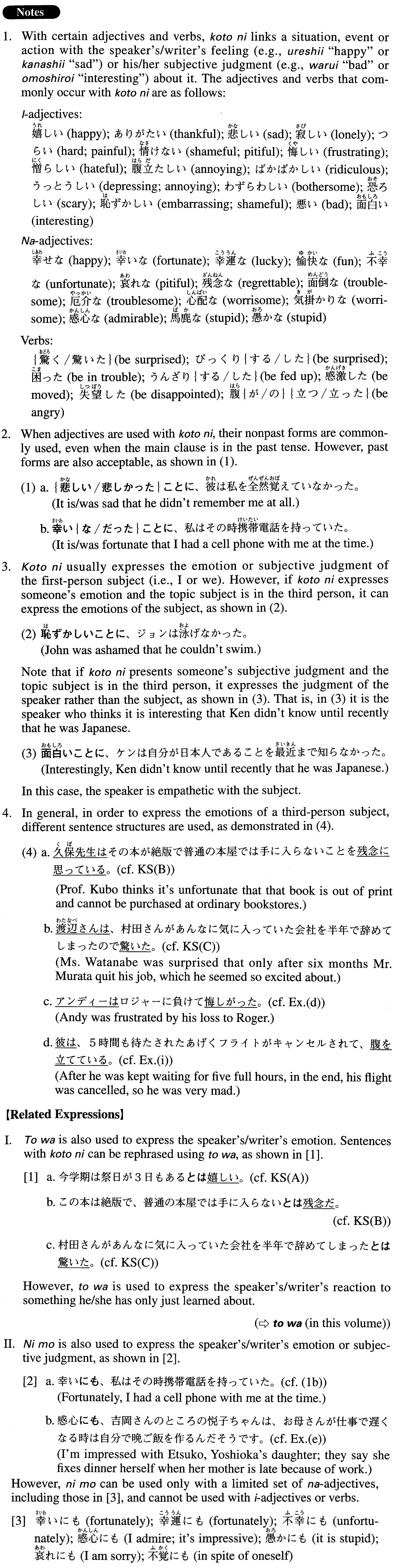 | (ii)Adjective な stem | {な/だった}ことに | |