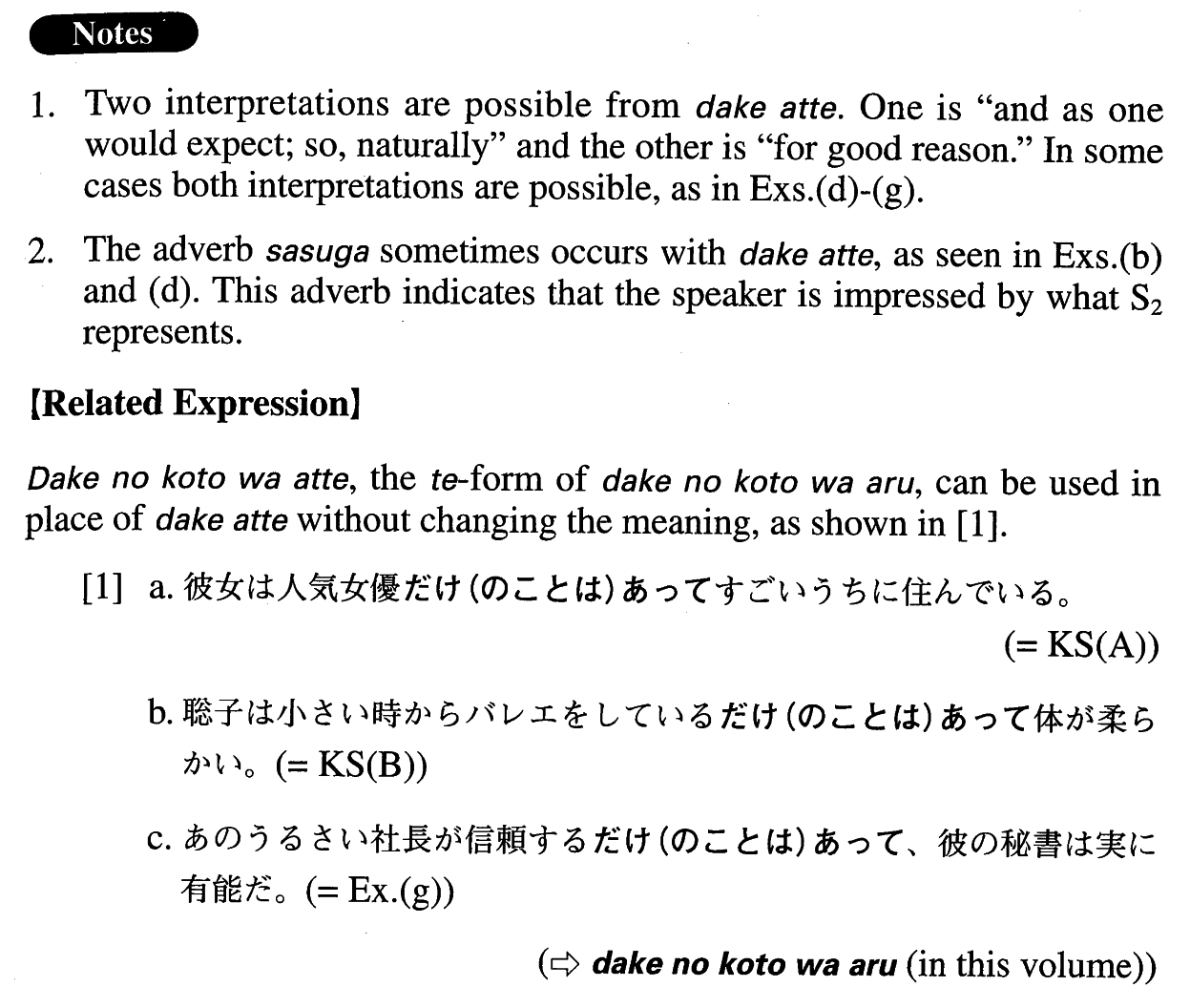 | 【Related Expression: だけのことはあって; だけに】 | |