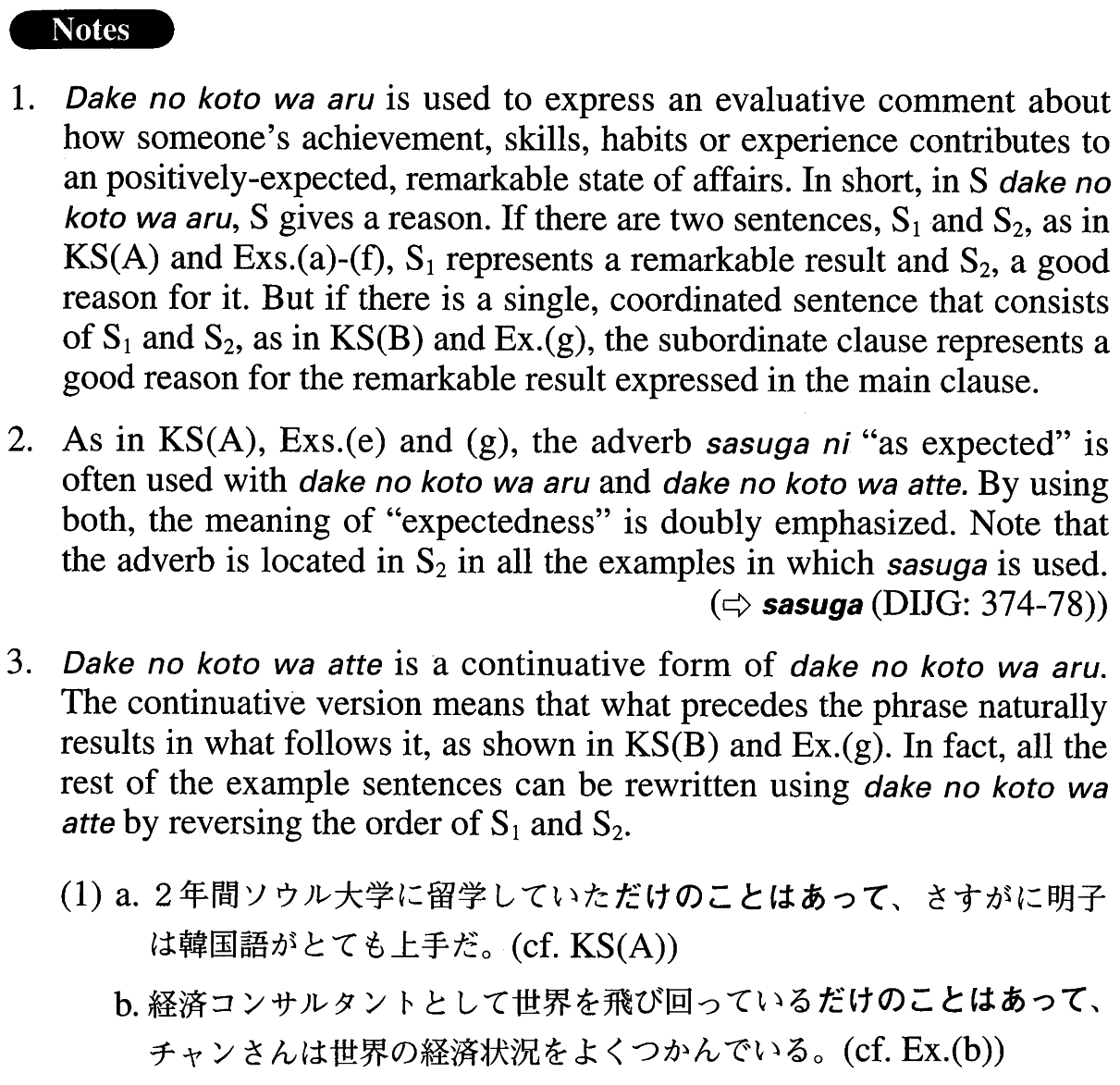 | (iii)Noun {Ø/だった} | だけのことはある | |