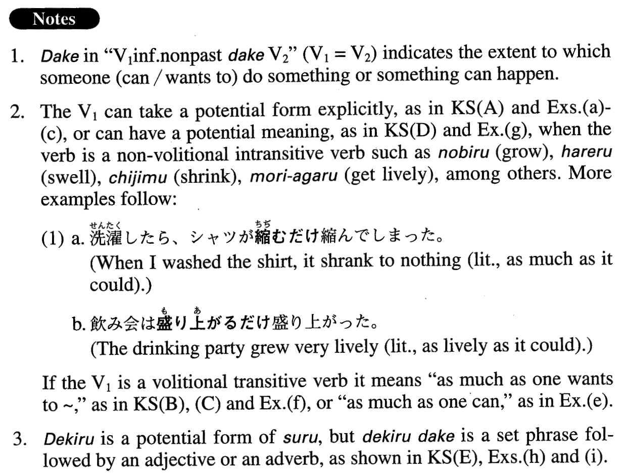 (iii)V1 informal nonpast だけV2 Where V=non-volitional intransitive verb; where V1=V2