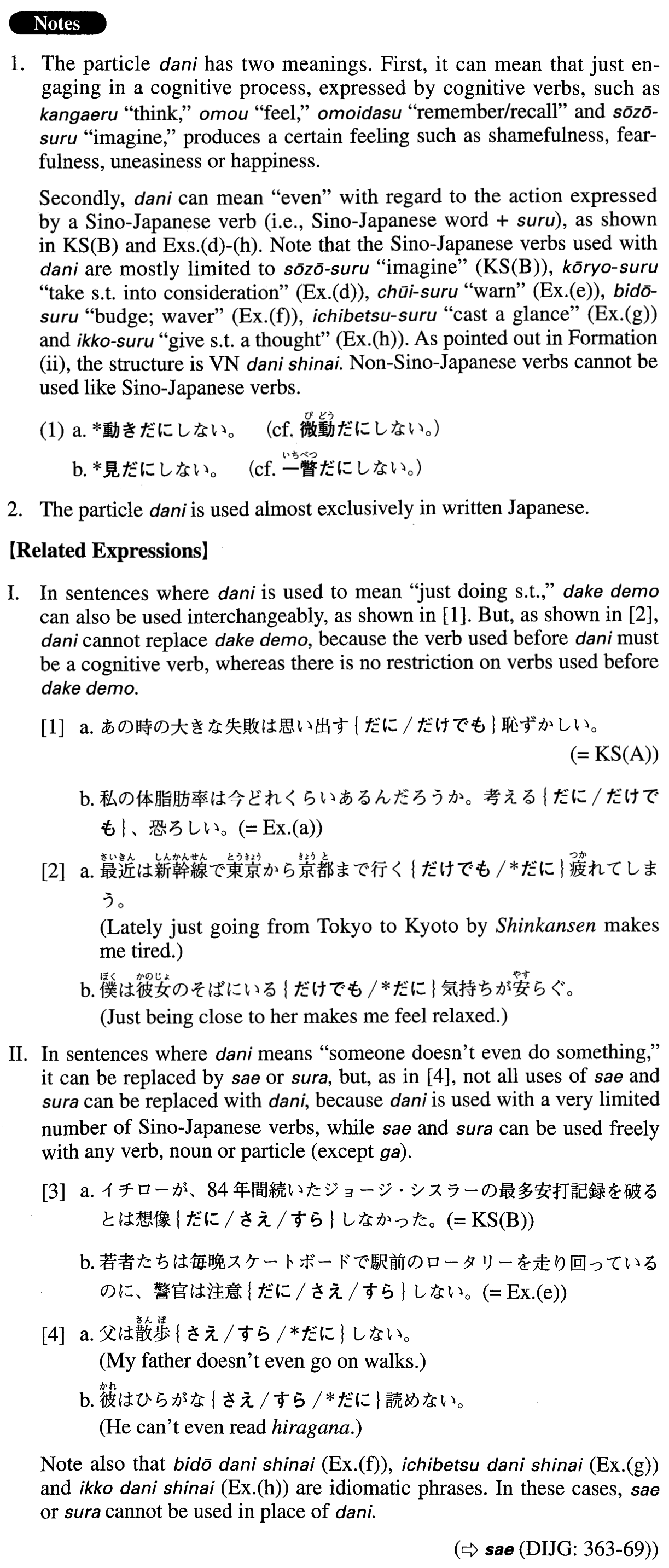 A particle indicating that something expressed by the preceding verb alone produces a certain feeling or the meaning "(not) even doing something; doesn't even occur". Just; (not) even