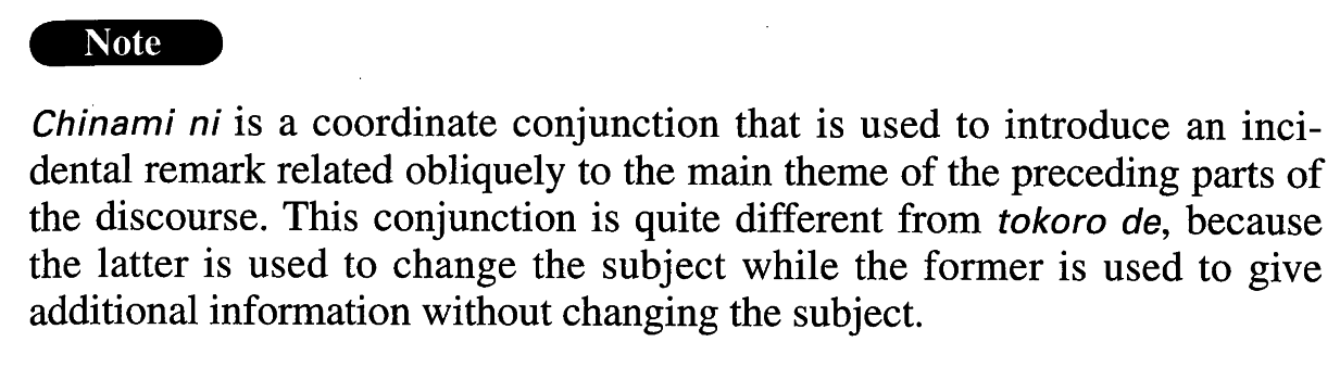 A conjunction to indicate that what follows is additional information related to the previously stated main theme Incidentally; in this connection