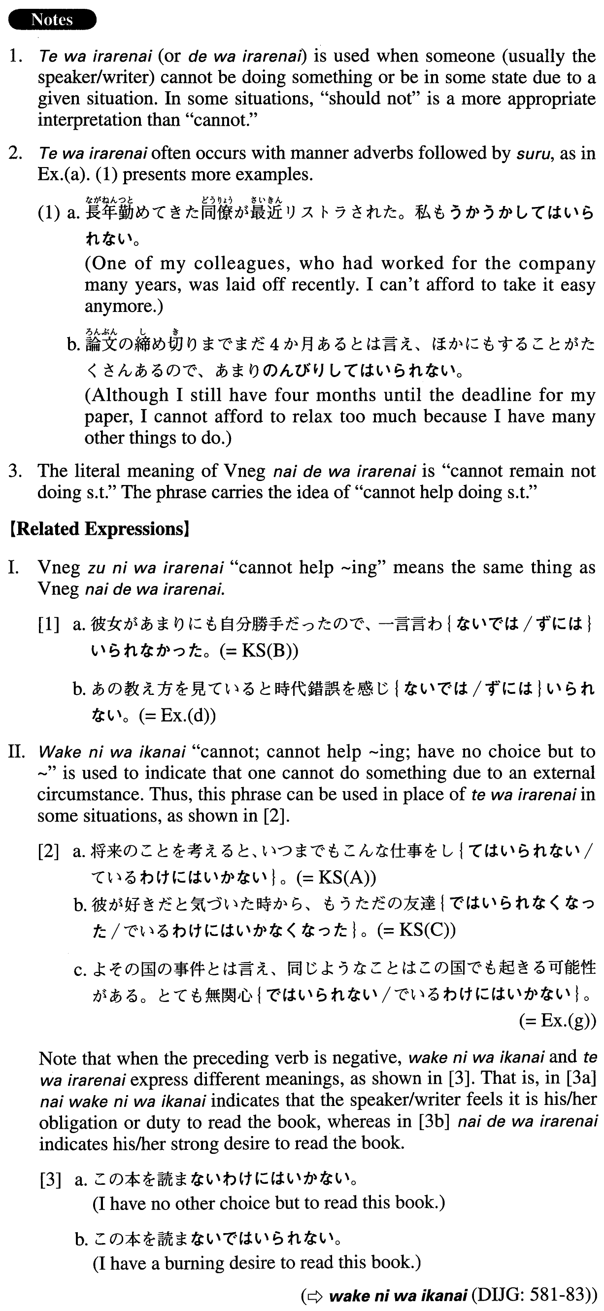 | 【Related Expression: ずにはいられない; わけにはいかない】 | |