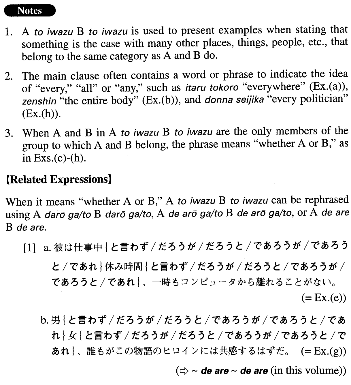 | 【Related Expression: だろうが/と~だろうが/と; であろうが/と~であろうが/と; であれ~であれ】 | |