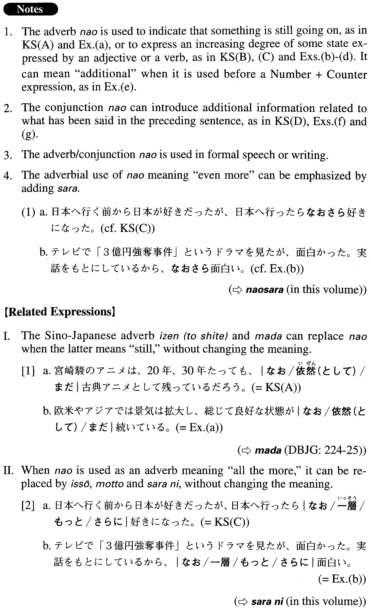 | 【Related Expression: 以前(として); まだ; 一層; もっと; 更に; ただ】 | |