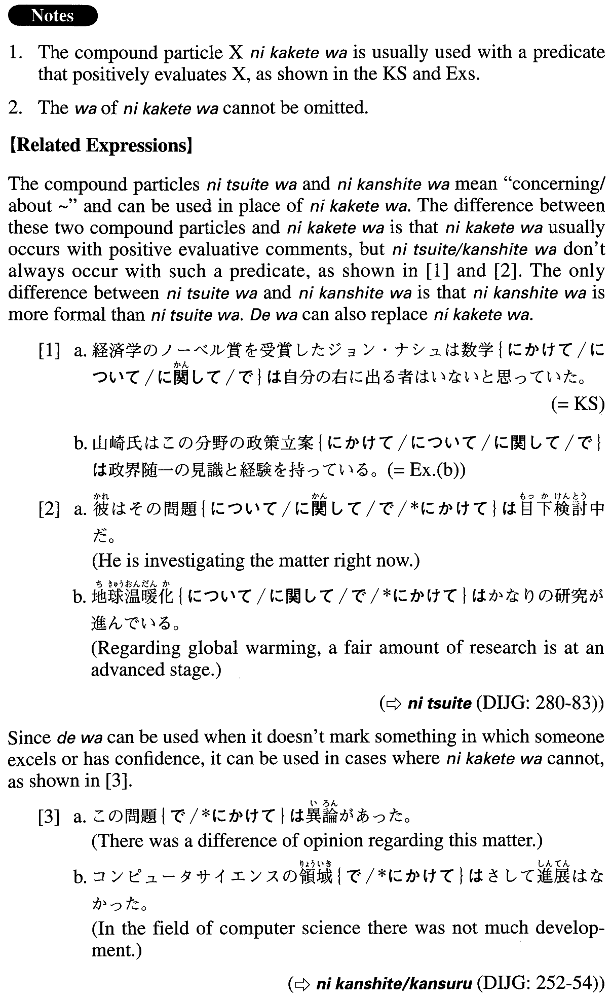 | 【Related Expression: については; に関しては; では】 | |