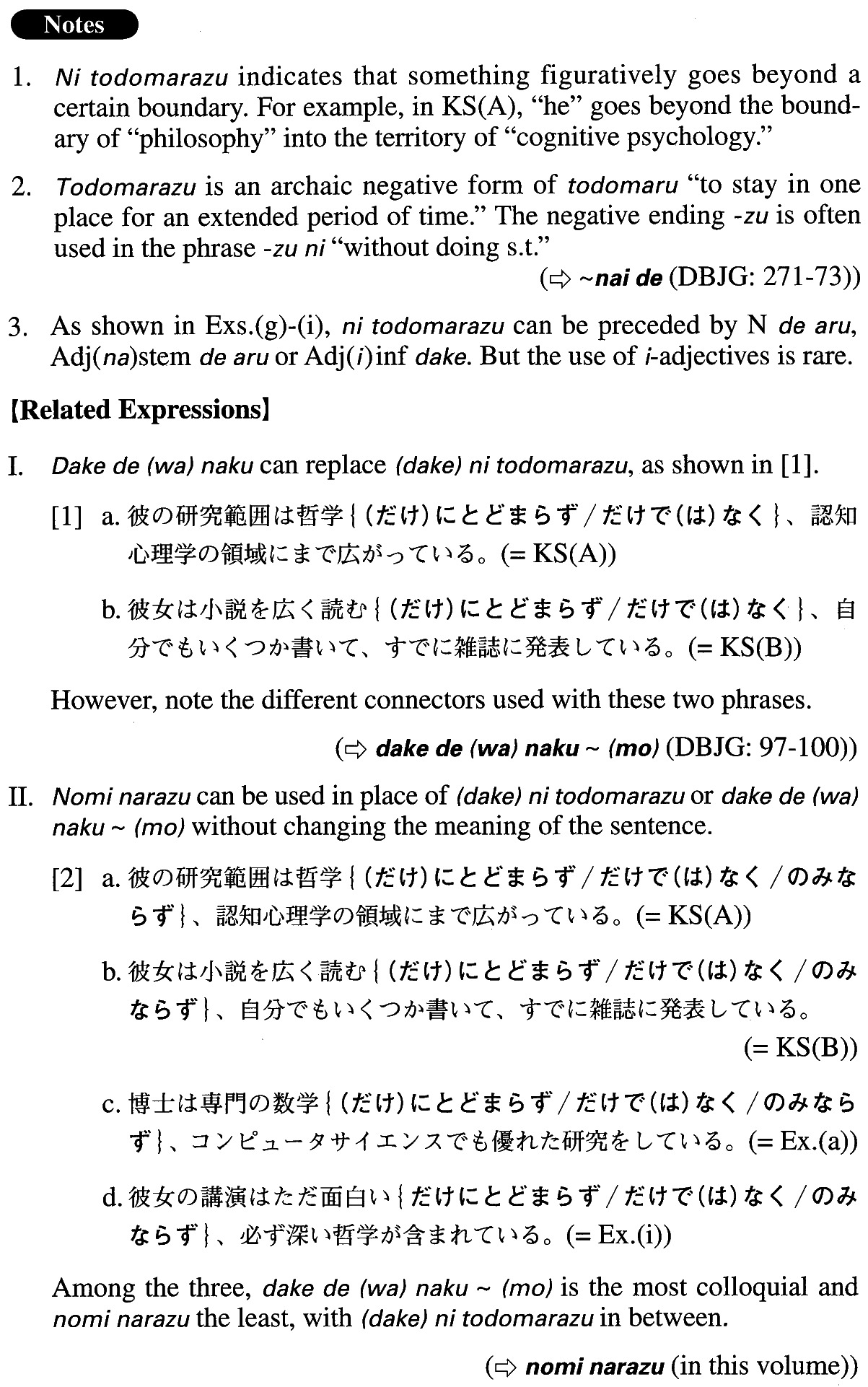 | (iii){Noun/Adjectiveなstem} | であるにとどまらず | |