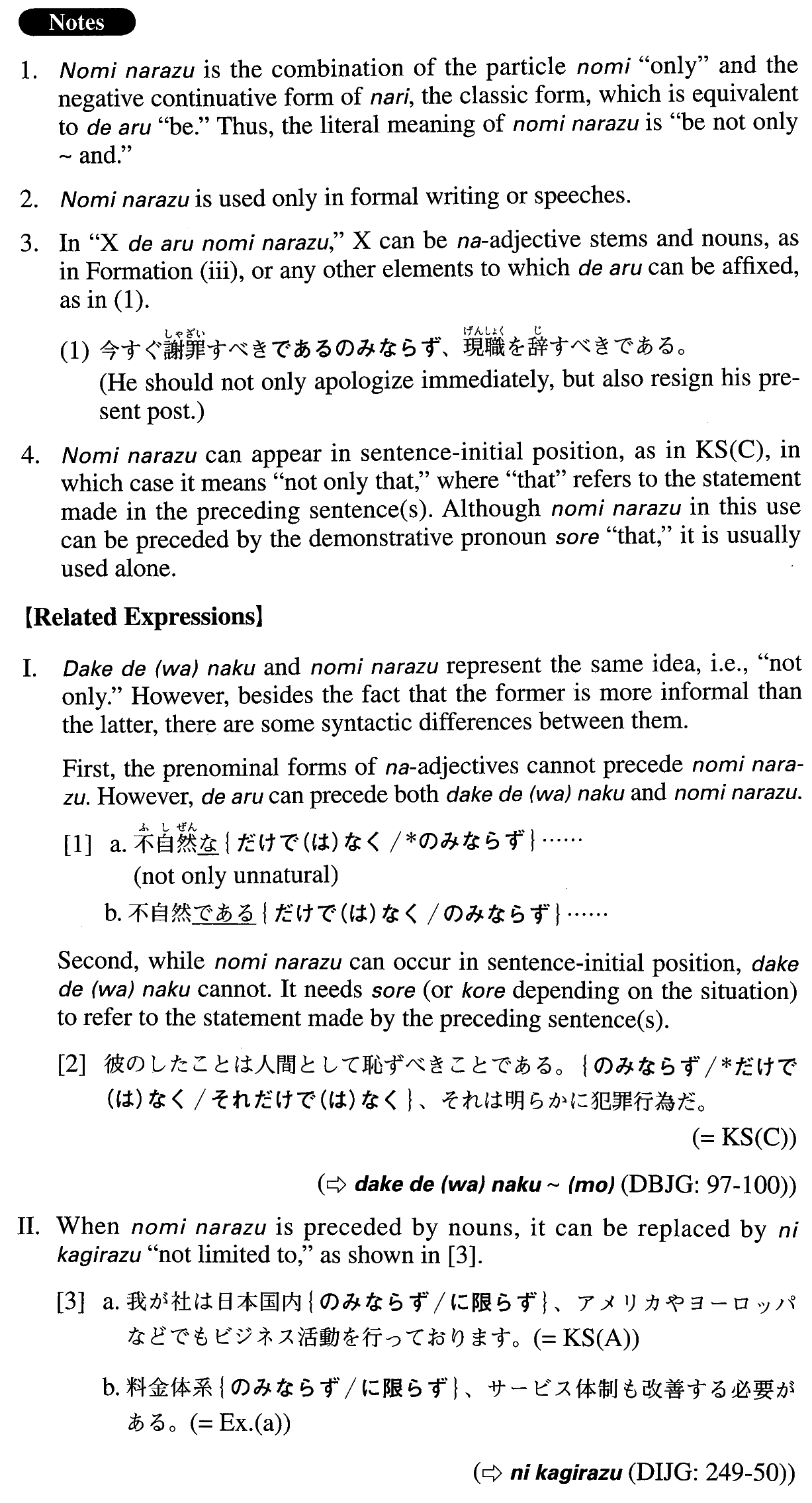 | (i)Noun (Particle) | のみならず | |