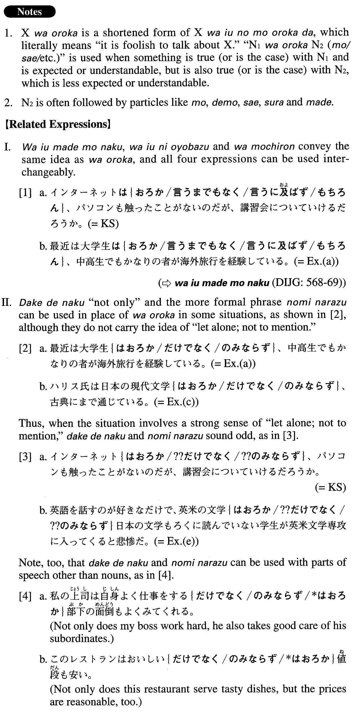 Noun1 はおろかNoun2{も/でも/さえ/すら/まで}