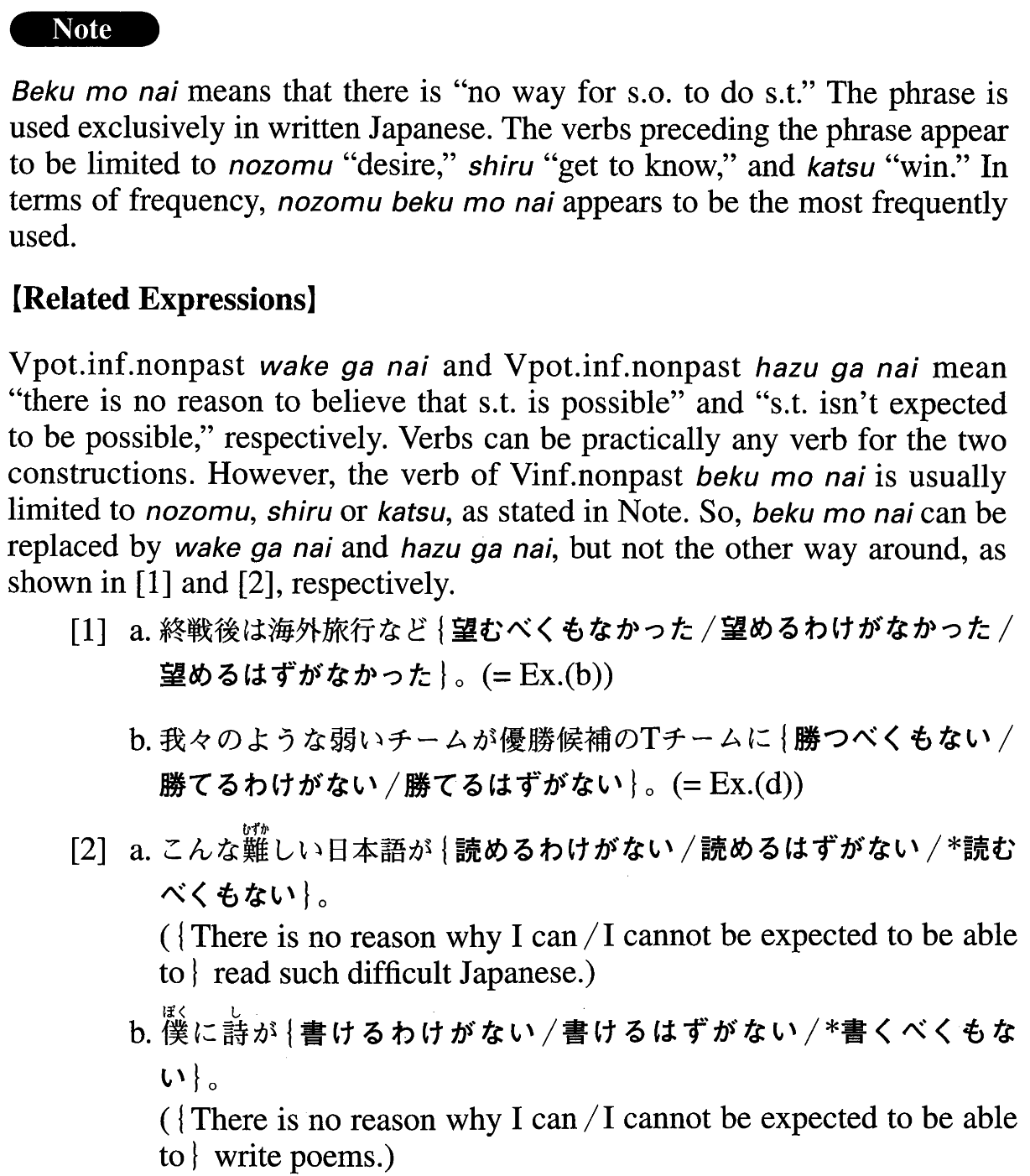 | 【Related Expression: Verb potential わけがない; Verb potential はずがない】 | |
