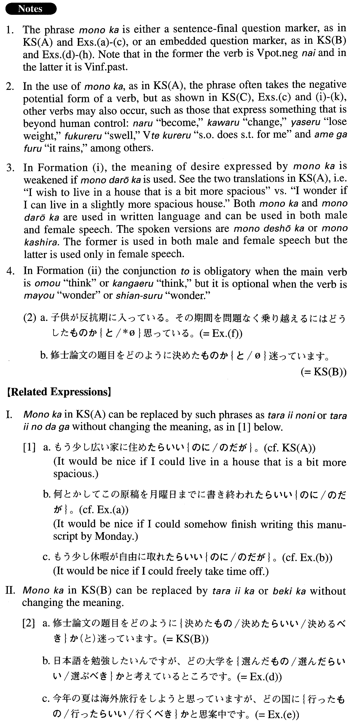 | (ii)Wh-word+Vinformal past | ものかとV | Where V=verb of thinking |