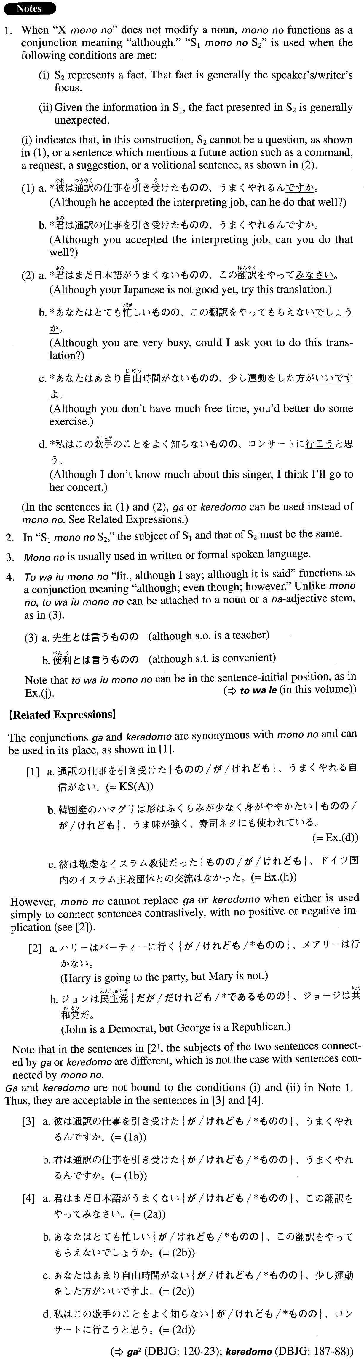 【Related Expression: が; けれども】