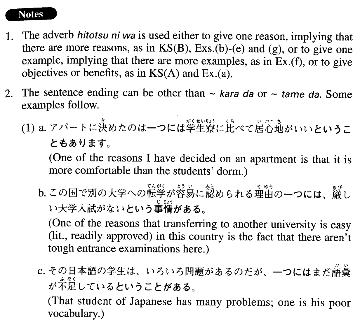 (iv)Noun{なの/である理由} 一つには~{から/ため}だ