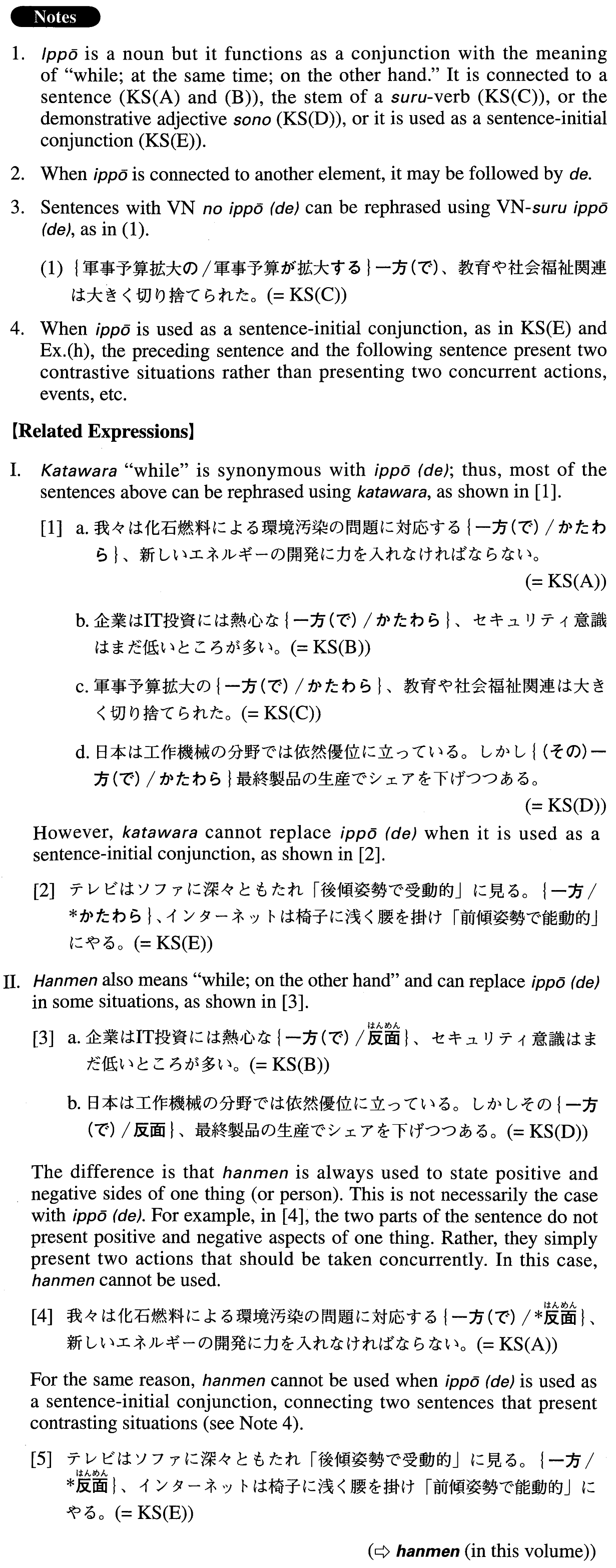 | (i){V/Adjectiveい}informal | 一方(で) | |