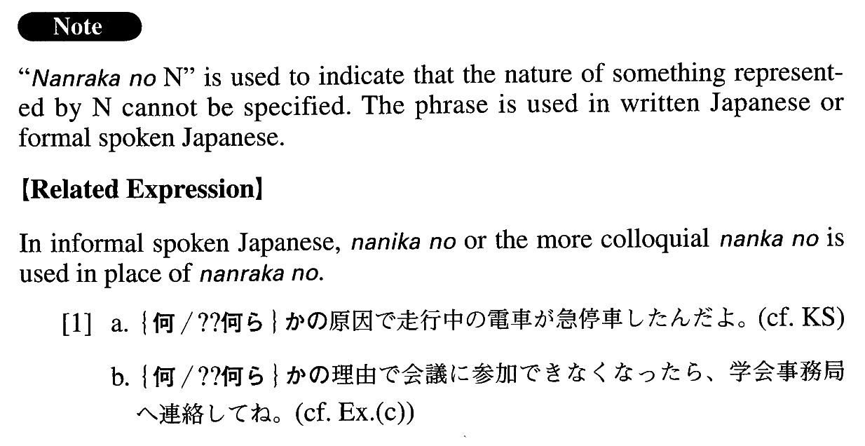 | 【Related Expression: なん(い)かの】 | |