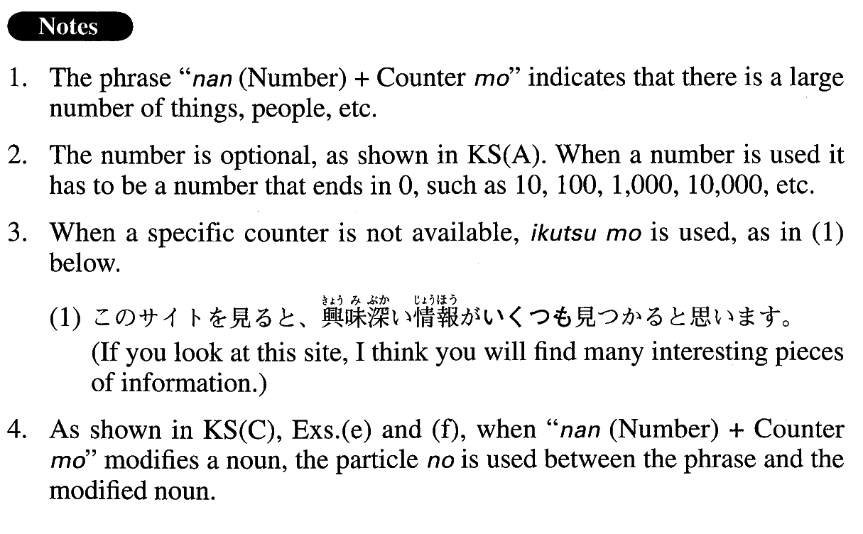 | (i)何 | (Number)+Counterも | |
