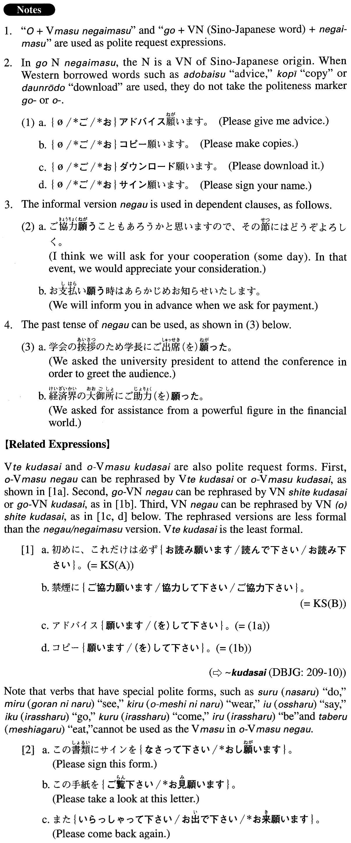 | (ii)ごVN | 願います | Where VN=Sino-Japanese compound |