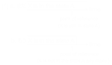 | Someone or something is in some state he or it was in some time ago. | Still; (not) yet |