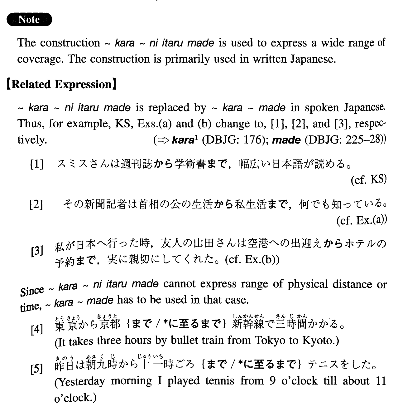 | A structure that expresses a wide range of things. | Starting with~ ending with~; from ~to~ |
