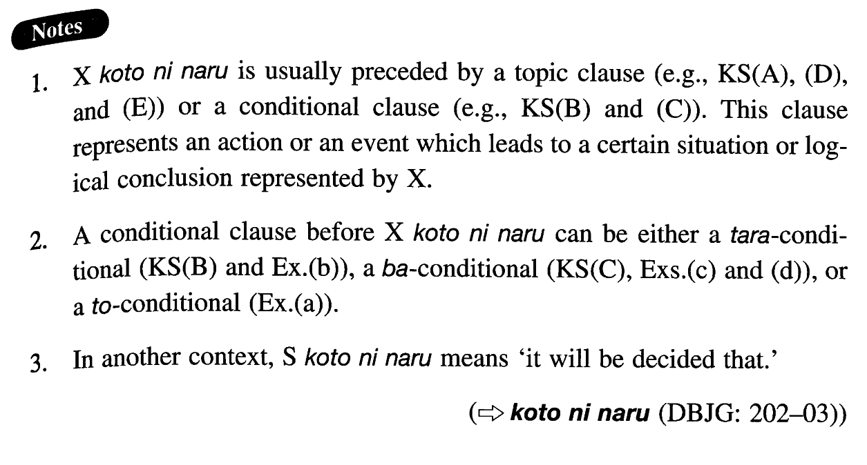 | (v)Sinformal | ことになる | Exceptions: Adjective な stem だ→Adjective な stem or formation (vi); Nounだ→Nounである or formation (iv) or (vi) |
