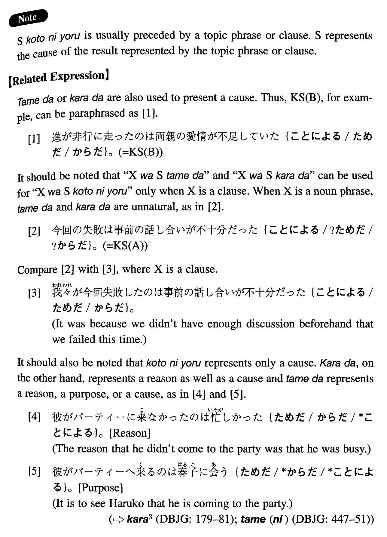 | Sinformal | ことによる | Exceptions: Adjective な stem なことによる; Noun であることによる |