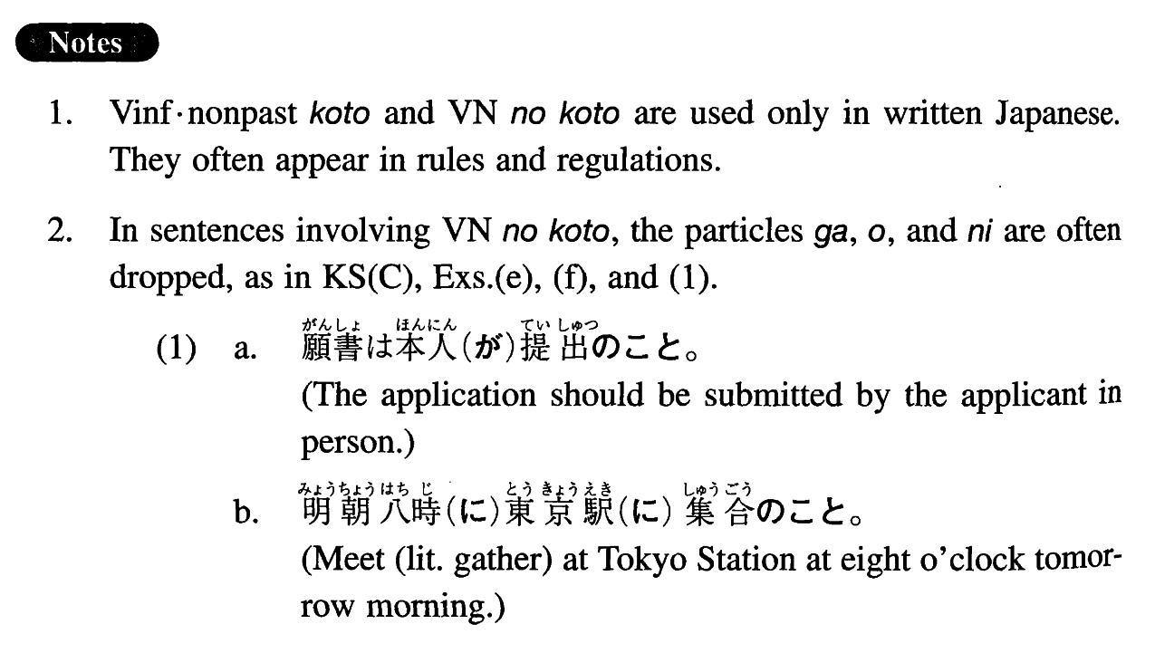 (i)Vinformal nonpast Affirmative/negativeこと