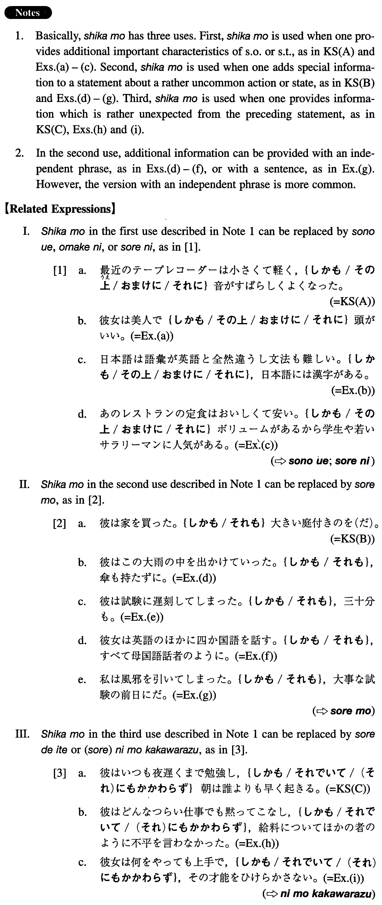 | (i){V/Adjective/Noun+Copula}て | しかも |
