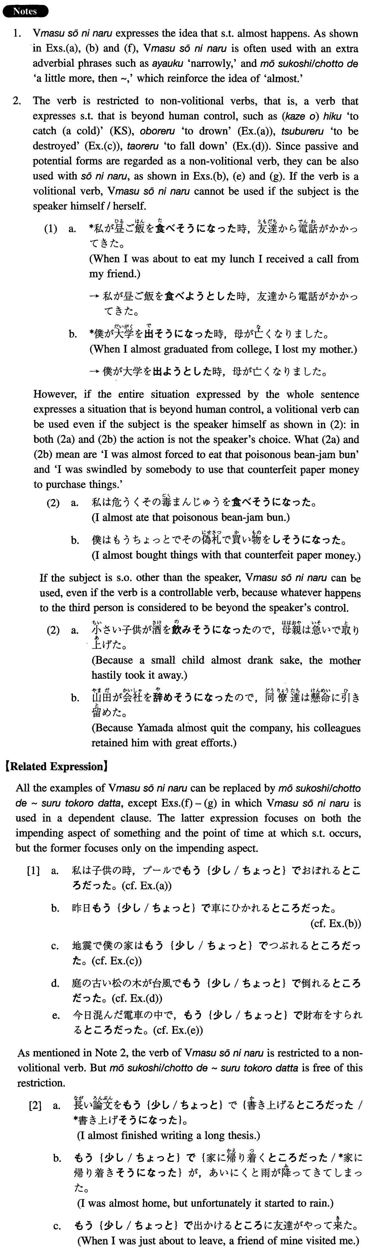 | 【Related Expression: もう少し; ちょっとで~するところ(だった)】 | |