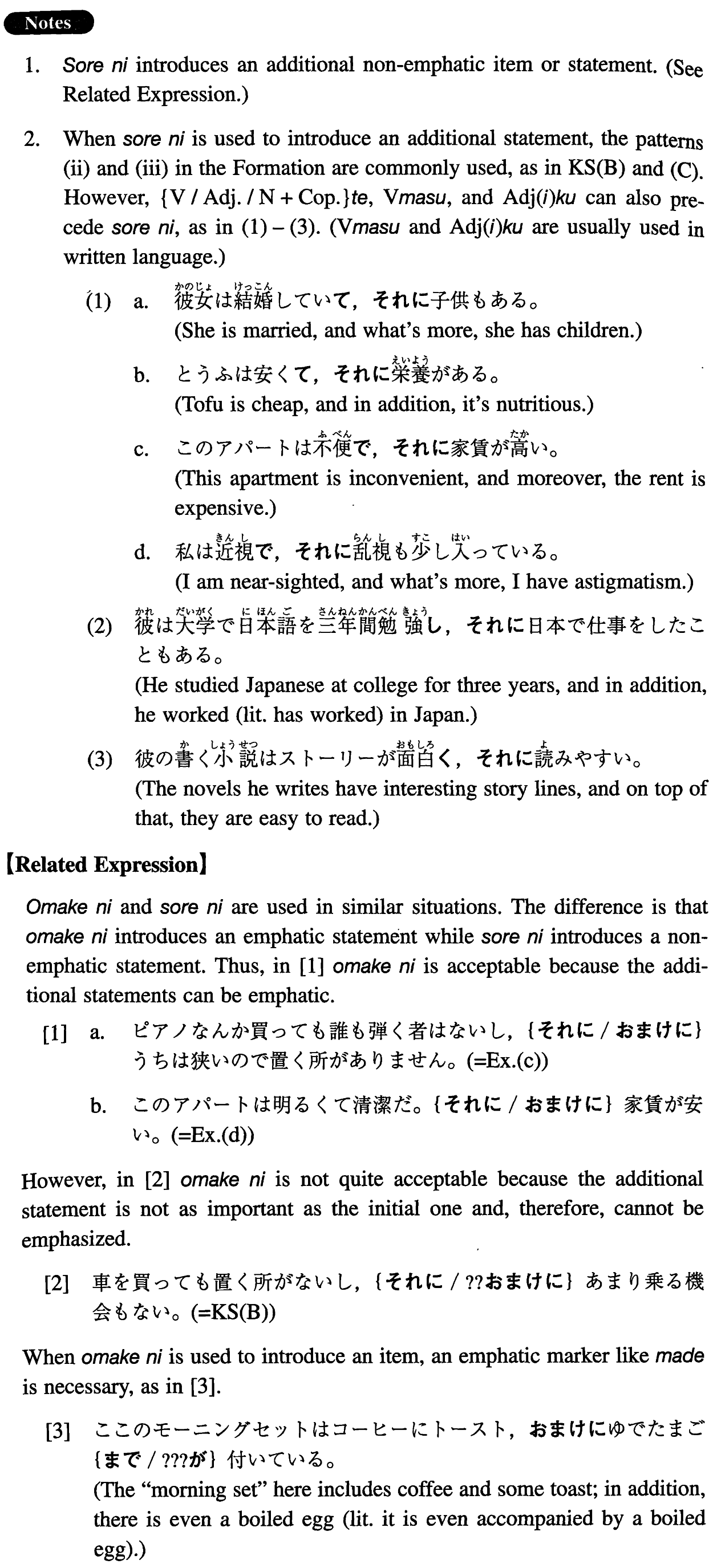 | 【Related Expression: おまけに; しかも; その上; それと】 | |