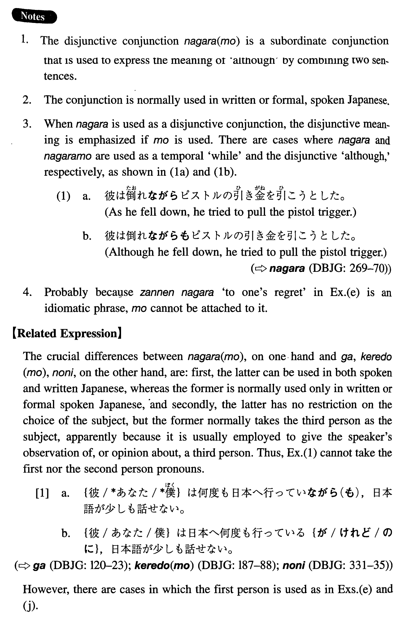| 【Related Expression: が; けれど(も); のに】 | |
