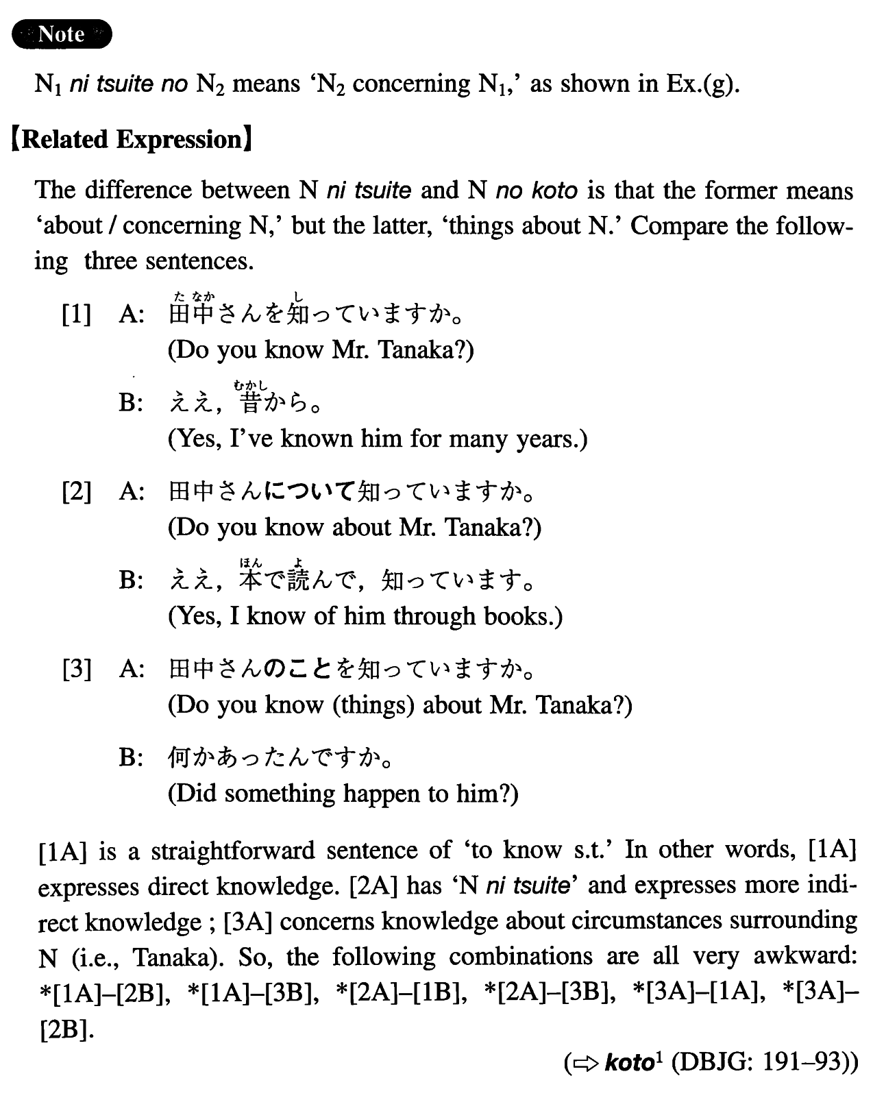 | 【Related Expression: に関して; のこと】 | |