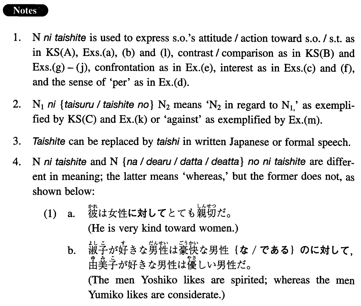 | (iv)Noun | に{対する対しての}Noun |