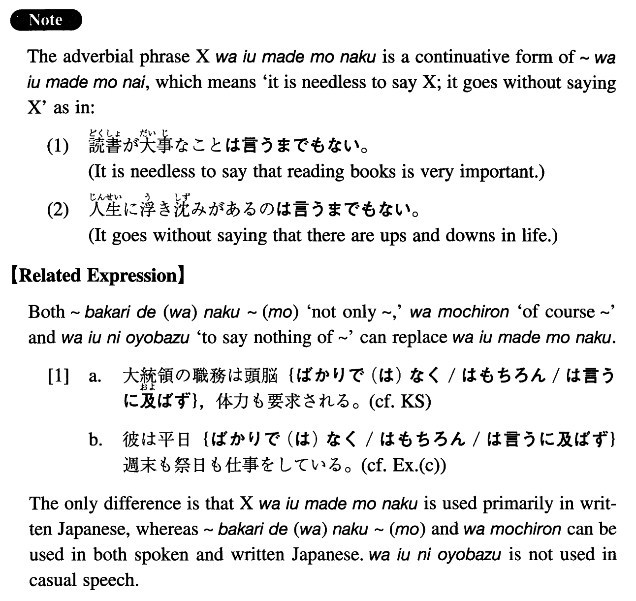 | Noun | は言うまでもなく |