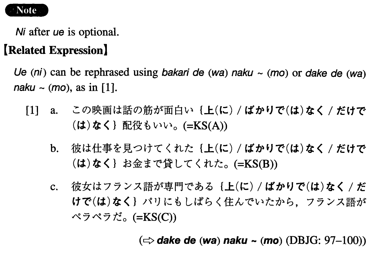 (ksb). 彼は仕事を見つけてくれた上(に)お金まで貸してくれた。