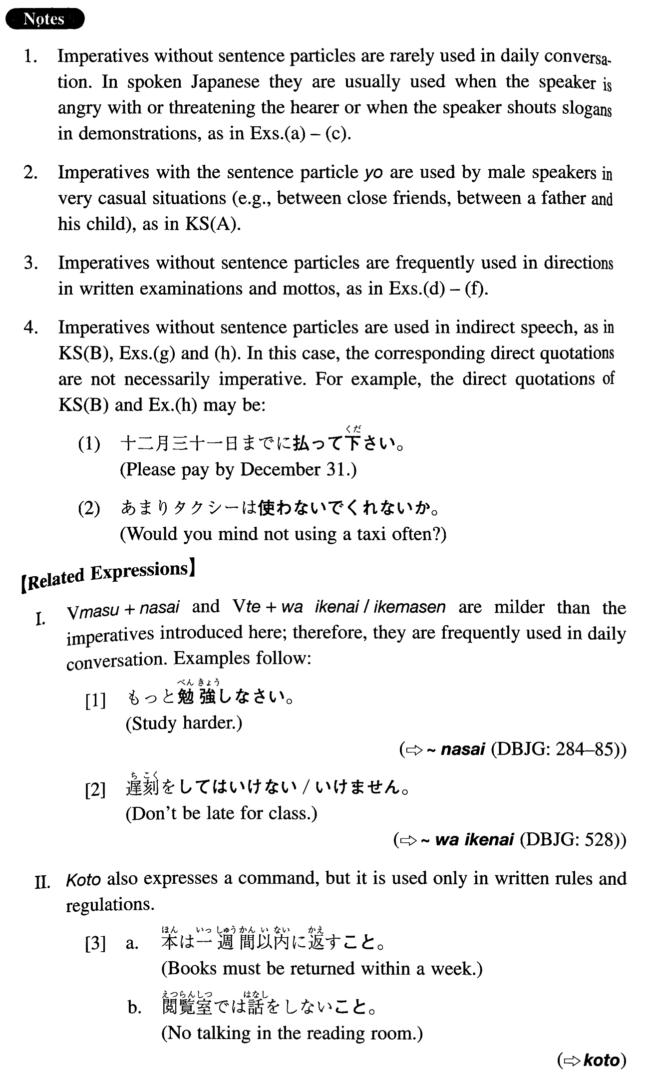 | 【Related Expression: こと; なさい; てはいけない】 | |
