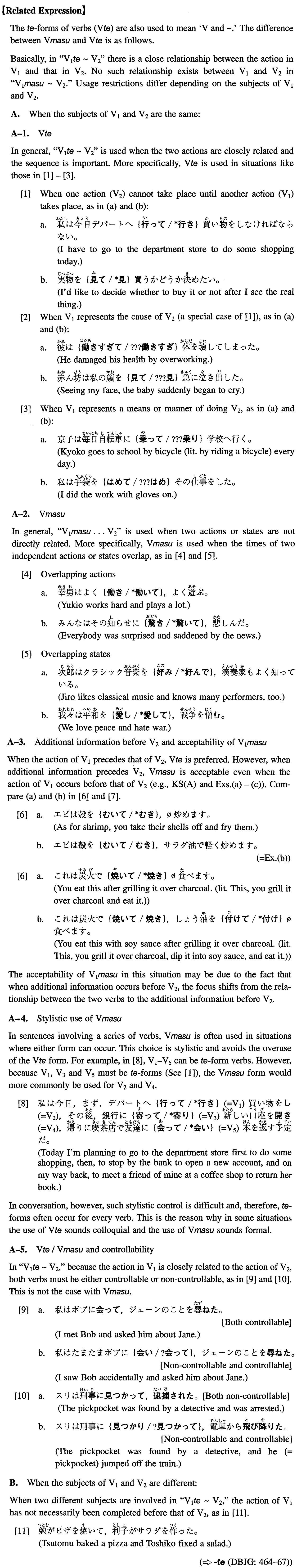 | A continuative form of a verb which means "V and...". | And; -ing |