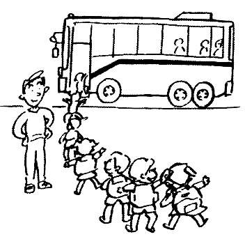 ❹ 子どもたちがみんなバスに乗り終わったら、出発しましょう。