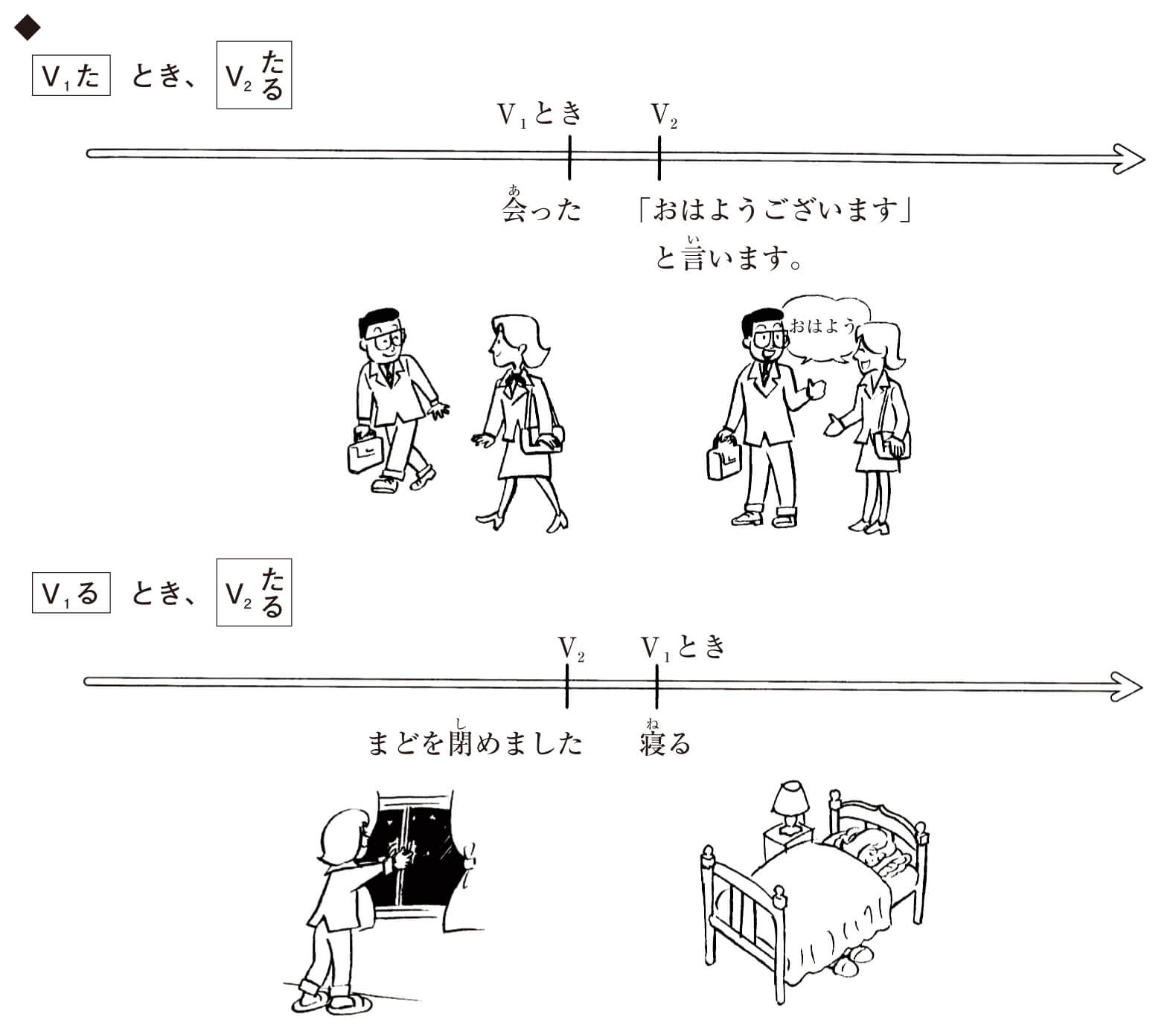4)Sentences ❽ and ❾ are spoken forms, and as is apparent, can often be used to urge speaker or others by using Vないと to take certain actions in daily life. Negatives such as いけない, だめだ, and 困る are omitted after Vないと.