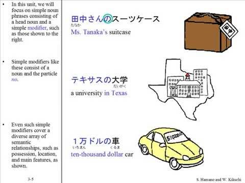 This unit explains how to form simple noun phrases of the types [noun + の + head noun] and [adjective + head noun].