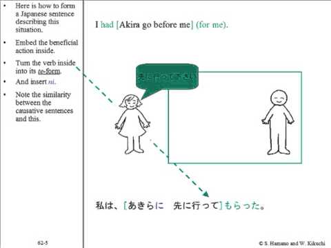 This unit explains the てもらう construction, which is similar to that of the "let" causative. The subject in this construction is grateful for the action performed by someone.