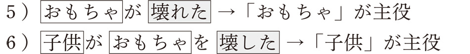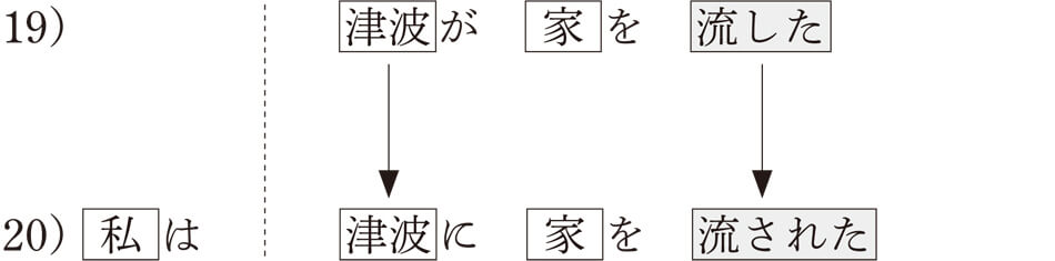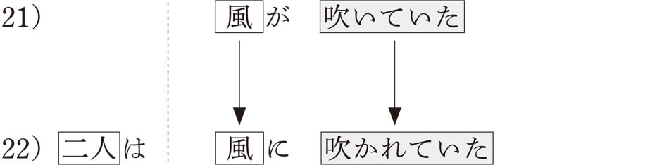 となっていたことでしょう。この場合、1)の文も2)の文も同じ事実を表していますが、誰を主役(主語)にするかによって、異なる形式になっているんですね。