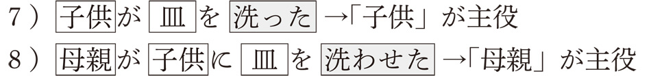 子供の動作を中心に表せば7)になるし、その動作を命じた母親の視点から表せば8)になるんですね。7)では子供が主役ですし、8)では母親が主役となっていると考えることができるでしょう。