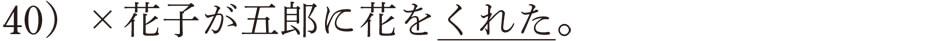 40)の例文が成り立つためには、「五郎」が自分の身内や関係者でなければなりません。そうでなければ非文法的になるわけです。このような、自分を中心に考える人とそうではない人のグループのことをウチ、ソトと呼び、この区別が「あげる」と「くれる」の使い分けに深く関わっているんですね。自分の関係者とそうではない他の人とを区別する発想は、いろいろな日本人論のなかでも扱われることが多いので、読者の方のなかにも聞いたことのある人が多いはずです。ところが、この「ウチとソト」の関係以外にも、日本人の心を表す重要な役割がこの「やりもらい動詞」にはあるんです。ここからは、おそらくどんな日本人論でも扱われていない日本人の思いやりを表す「やりもらい動詞」についての説明になります。