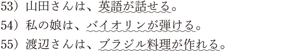 これに対し、英語では必ず“I can do...”と人間の意志によって実現の有無を決定する表現が使われるわけです。ここに、欧米語などに代表される人間中心の発想とは明らかに異なる、日本人の発想を見ることができるわけです。なお、日本語の文法書の多くでは、前掲の例文に見るような「英語」「バイオリン」「ブラジル料理」を対象(目的語)とみなしますが、本書では日本語の特質という観点から主語として扱っています。