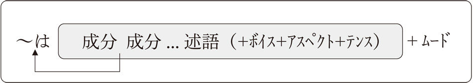 第6章までで、客観的な事実を構成する部分(コト)ができあがりました。「家」で喩えれば、土台と柱と壁からなる建物が完成しましたが、まだ、ガラーンとした状態です。この家に家主の希望にそって色を塗り、システムキッチンやバスなどの設備を入れ、カーテンや照明器具をつけていきます。このような家主の志向や気持ちがこもっている部分がムードになります。したがって、基本的な骨組みにムードの表現が加わることで、生き生きとした文ができあがるわけです。第3章で見た主題化もムードの一つですが、それ以外にもムードの表現は非常に多くあり、基本的に述語の最後につくと言えます。