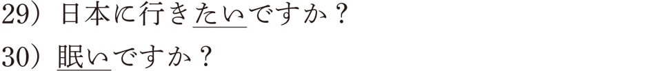 29)の相手に尋ねる「~たいですか?」は親しい友人や目下の人には使えますが、目上の人には使えませんので、注意が必要です。